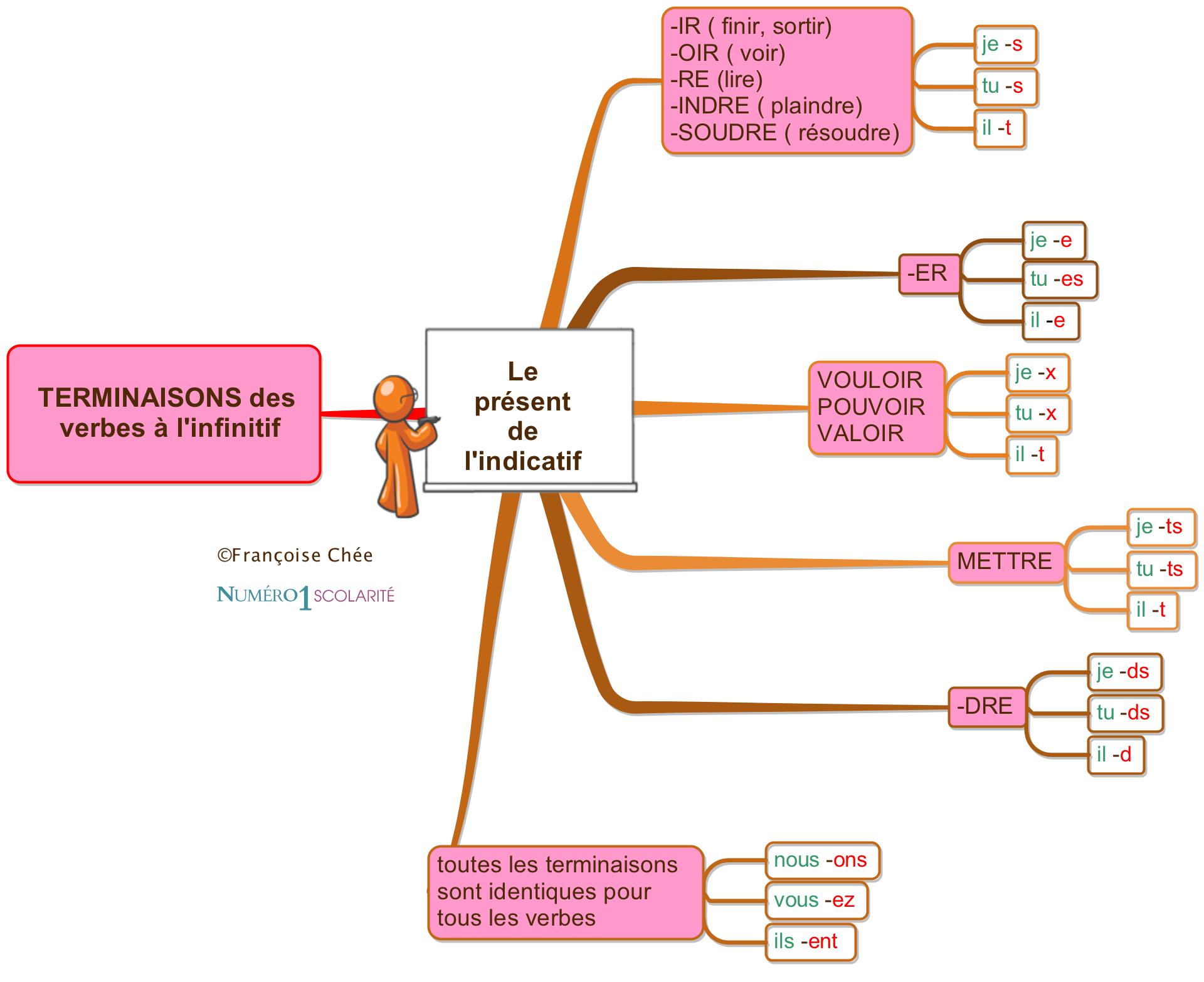 Les verbes en -dre se terminent par -ds, -ds, -d, sauf les verbes en -indre et -soudre. > je prends, tu prends, il prend mais je résous, tu résous, il résout.