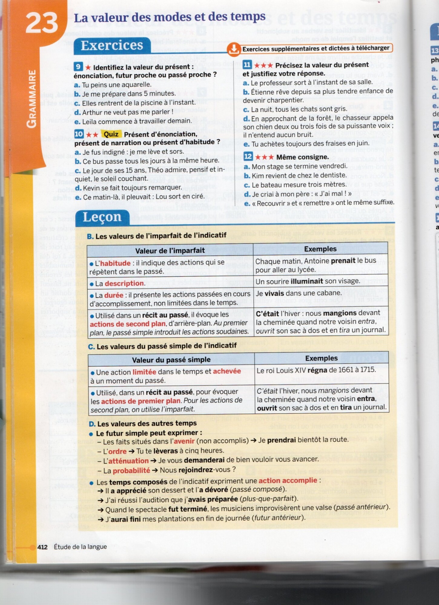 faites les exercices 9, 10, 11 et 12 page 412 sur les valeurs du présent de l'indicatif.