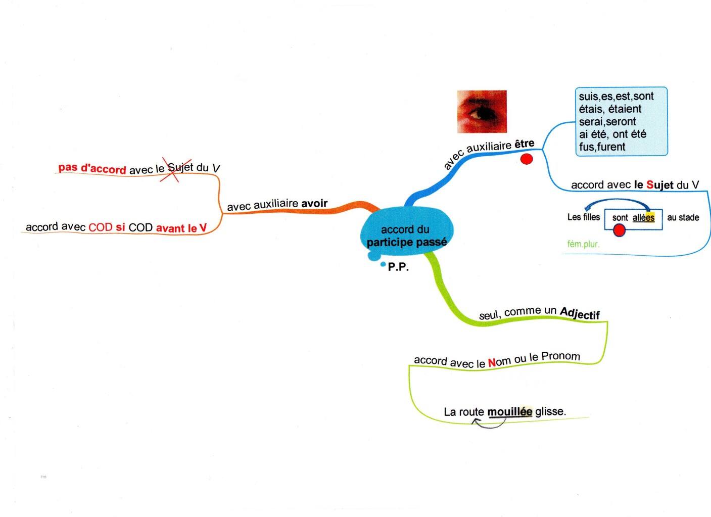 a. descendus (auxiliaire être ; accord avec le sujet ils). – b. mangé (auxiliaire avoir ; pas d'accord). – c. choisie (auxiliaire avoir ; accord avec le COD couleur placé avant l'auxiliaire). – d. reparties (auxiliaire être ; accord avec le sujet elles) ; chargées (sans auxiliaire ; accord avec le pronom elles auquel il se rapporte). – e. cachés (auxiliaire avoir ; accord avec le COD bijoux placé avant l'auxiliaire).